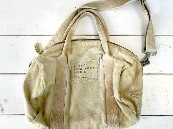 תיק נסיעות מבד סטונווש, עם ידיות קנבס ורוכסן לסגירה. מעוטר בהדפסים מקוריים שלנו במגוון צבעים.