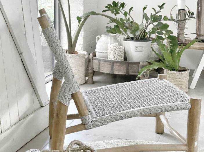 כורסת אליס האהובה, עשויה מעץ טבעי וראטן סינטטי, דמוי חבל.